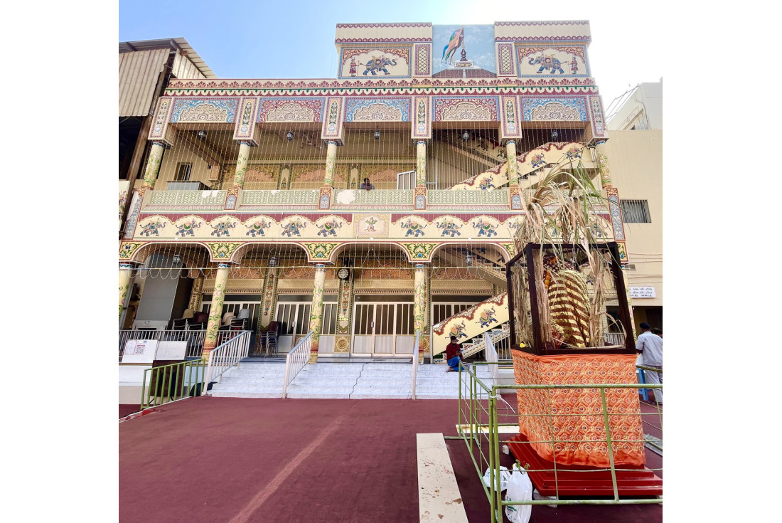 It holds the distinction of being one of the first and the oldest temple in the Gulf countries and has been catering to the needs of the large Hindu expatriate community, since centuries.  The temple's architecture, with decorated miniature elephants marching beside red, yellow and pink floral patterns, reflects traditional Hindu temple designs. The inner sanctum is dedicated to Lord Shrinathji  ( originating from Nathdwara, Rajasthan - India). People from various backgrounds gather here at Shrinathji Temple to celebrate festivals like Holi, Diwali, Krishna Janmashtami, Navratri, Durga Puja, Ganesh Utsav, Onam etc.  The Temple opens during scheduled timings as per the protocol of Shrinathji Temple in Nathdwara.  Devotees are expected to dress modestly and shorts/ revealing attire is not permitted. The Temple plays a vital role in maintaining the cultural identity of the Hindu community in Bahrain. It also acts as a focal point for social gatherings and charitable activities.